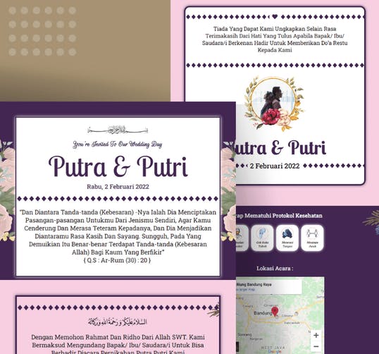 Kumpulan template landing page 100% canva yang bisa digunakan untuk membuat landing page dengan tema invitasi atau undangan wedding pernikahan.